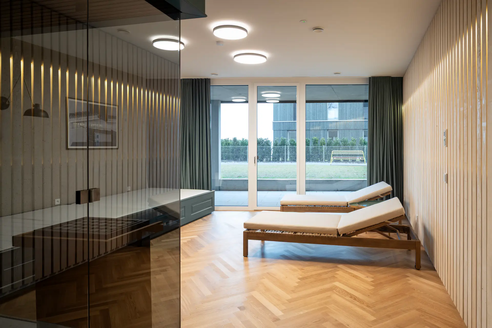 Der eigene, exklusive Spa- und Fitnessbereich in der Wohnanlage bereichert den Alltag erheblich. Statt lange Wege ins Fitnessstudio oder zur nächsten Wellnessoase auf sich zu nehmen, genießen sie Erholung und sportliche Betätigung direkt in der Anlage. Das spart nicht nur Zeit und Geld, sondern motiviert auch, regelmäßiger aktiv zu sein. Ob eine schnelle Trainingseinheit am Morgen oder ein entspannter Saunagang am Abend – all das ist jederzeit möglich, ohne das Haus verlassen zu müssen. Die private Atmosphäre bietet dabei mehr Ruhe und Komfort als öffentliche Einrichtungen. Gleichzeitig stärkt ein gemeinsamer Spa- und Fitnessbereich das Gemeinschaftsgefühl unter den Bewohnern.